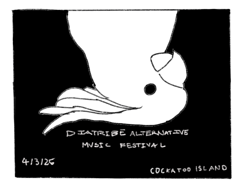 Festival name (above), location (Cockatoo Island) and date (4/3/25)