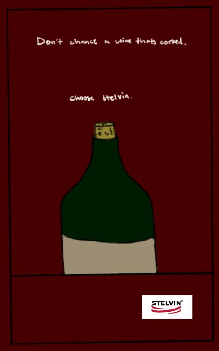Copy: “Corks are unreliable. They allow air to seep into the bottle causing oxidation and dulling the wine, up to 10% of wine may be marred by cork taint. The wine will smell like wet cardboard and taste horrible. Now there’s no need to chance a cork. With a metal screw cap air cannot get into wine. Avoid disappointment, for you and your guests, by buying wine with a Stelvin screw cap. Learn more at Stelvin.com.”